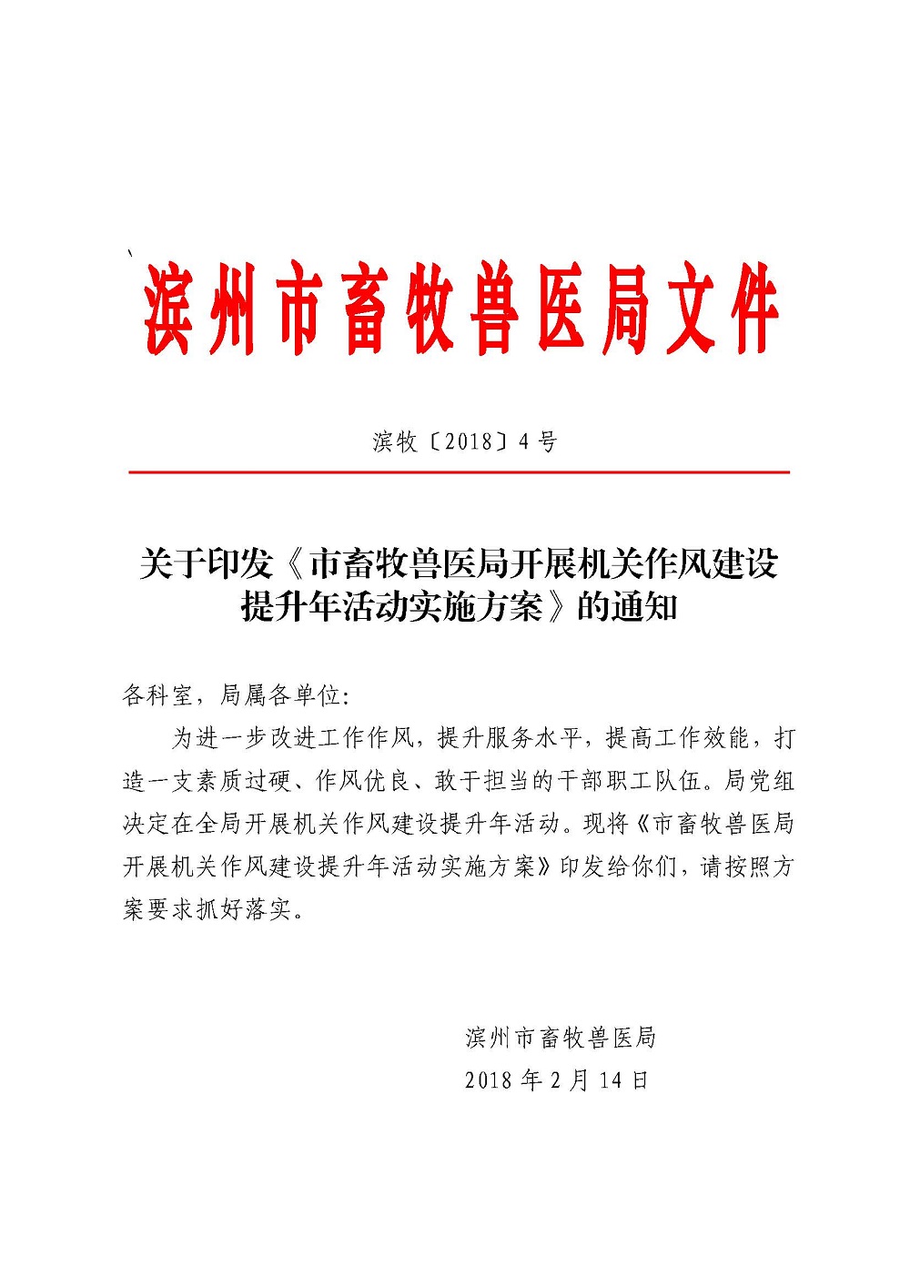 滨牧〔2018〕4号(关于印发《市畜牧兽医局开展机关作风建设提升年活动实施方案》的通知)